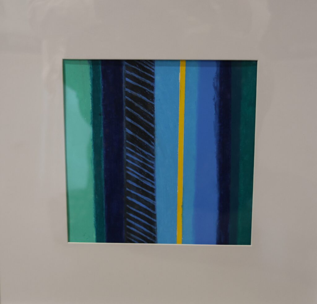 For the project, students were asked to create an abstract self-portrait using oil pastels and represent their physical, mental, and emotional states through bands of varying thickness, colors, and textures. This resulted in abstract compositions resembling barcodes.