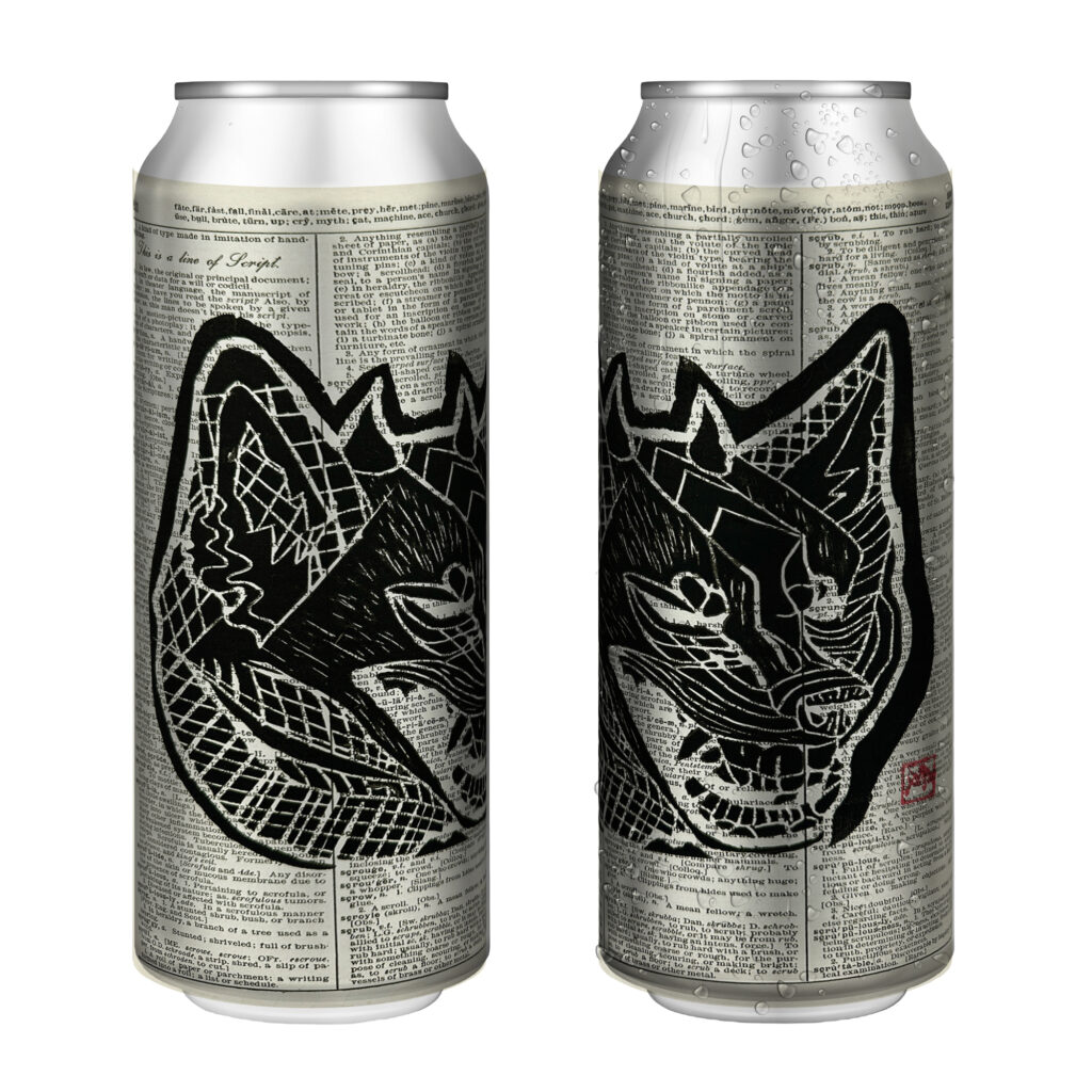Taylor created mock-ups of art that came out of Printmaking Studio — four relief printing and four screen printing — and another four mock-ups of art that came out of Creative Wellness Studio, and sent them to the brewery and beer store for review.