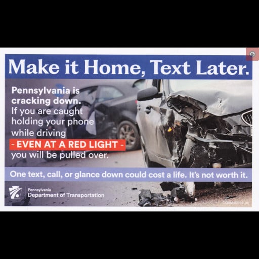 Lebanon County police departments are committed to ensuring the safety of our roadways. Distracted driving is a serious and preventable cause of accidents, injuries, and fatalities. We urge all drivers to familiarize themselves with Paul Miller’s Law and make the conscious decision to put their phones down and focus on driving. Let’s work together to make our roads safer for everyone. Click here to learn more.