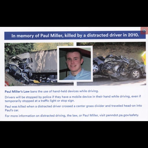 Paul Miller’s Law – Lebanon County police departments remind motorists that Paul Miller’s Law, a statewide regulation aimed at preventing distracted driving, went into effect on Thursday, June 5.