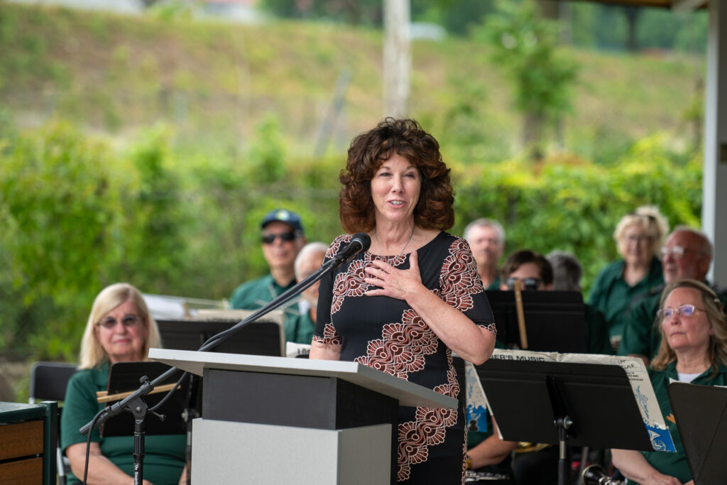 “I love being a trail town. And it includes this beautiful playground, fitness stations, pavilion, and the first and only traffic garden, thanks to Laurie Crawford, because I know that when she first said, ‘Oh, this is what we want to do.’ We’re like, ‘Hmm, but look at it.’ And it’s designed to help children to learn bike safety in an urban environment. So how cool is that?” said Capello. “Our connector path with the bike lanes, the arrows, the way-finding signage, and it was designed to connect with, as John indicated, the Veterans Memorial Walkway, which was just refurbished. We’re very proud of that.”