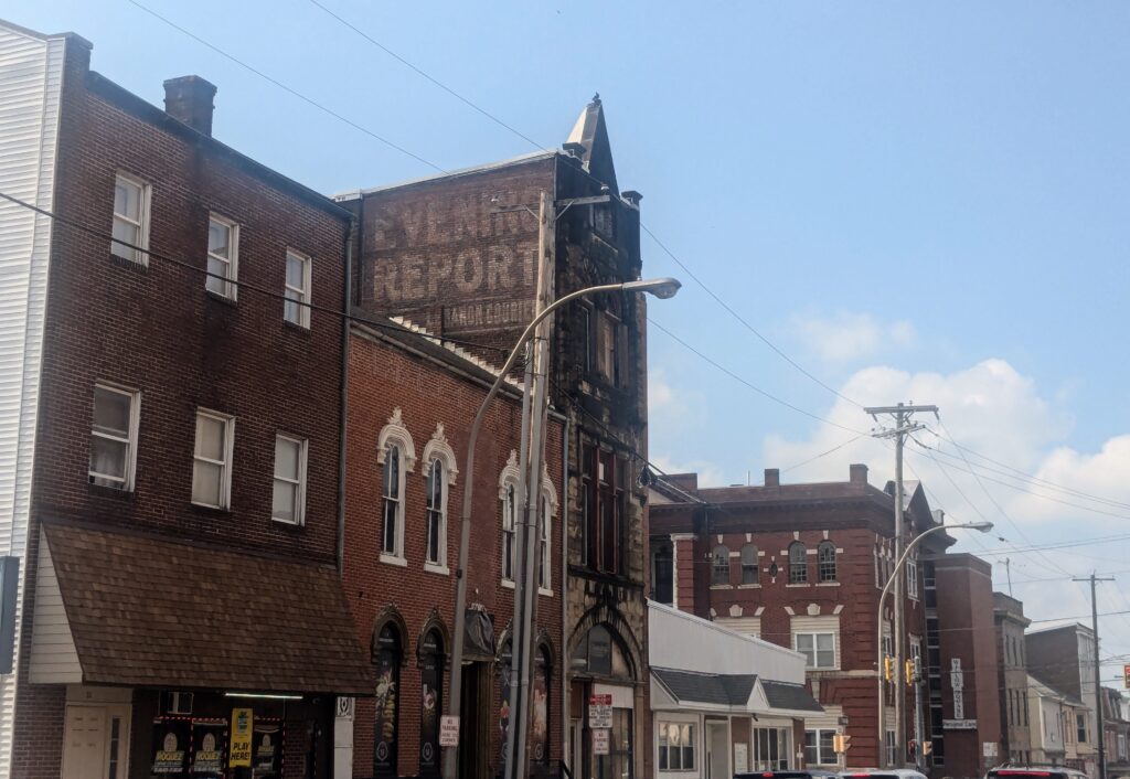 Featuring prominently an advertisement for the Evening Report Publishing Company, this building (located at 41 N. 9th Street) was once a printing press for multiple local news outlets.