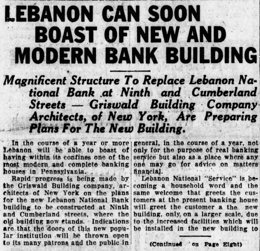 A 1924 article describes the planned building as being “one of the most modern and complete banking houses in Pennsylvania.”