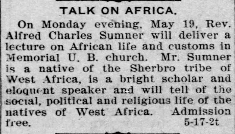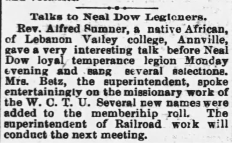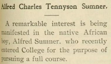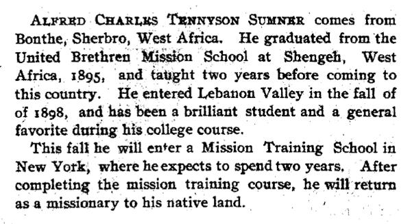 In 1898, Alfred Charles Sumner traveled from his home of Sierra Leone to Lebanon, Pennsylvania, to enroll in Lebanon Valley College.