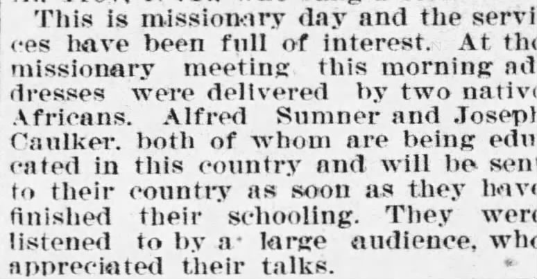 In an account published in the 1898 edition of the College Forum (PDF, page 27), Sumner wrote about his time living in Africa. He noted he was not a traveler and could not speak completely to African cultures other than that which he grew up around.