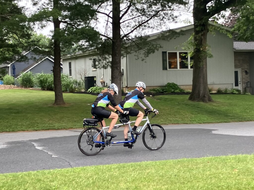 Hess said she rides on the back of the tandem, which is an interesting position because you cede control to the person who’s driving in the front. “He’s all the power, so I’m in the back,” she explained.