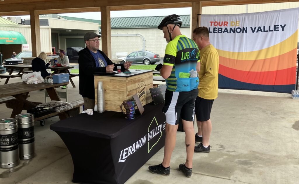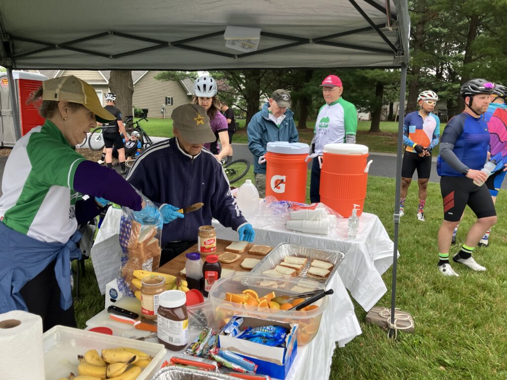 An array of goodies and snacks including homemade cookies, bananas, watermelon and orange slices along with water and Gatorade were available at each stop as well as those delicious PBJ sandwiches. The post-ride party was at the expo center and included music and a free draft beer from Lebanon Valley Craft Brewery. Hot dogs with sauerkraut, pizza, and hoagie subs were served for lunch.