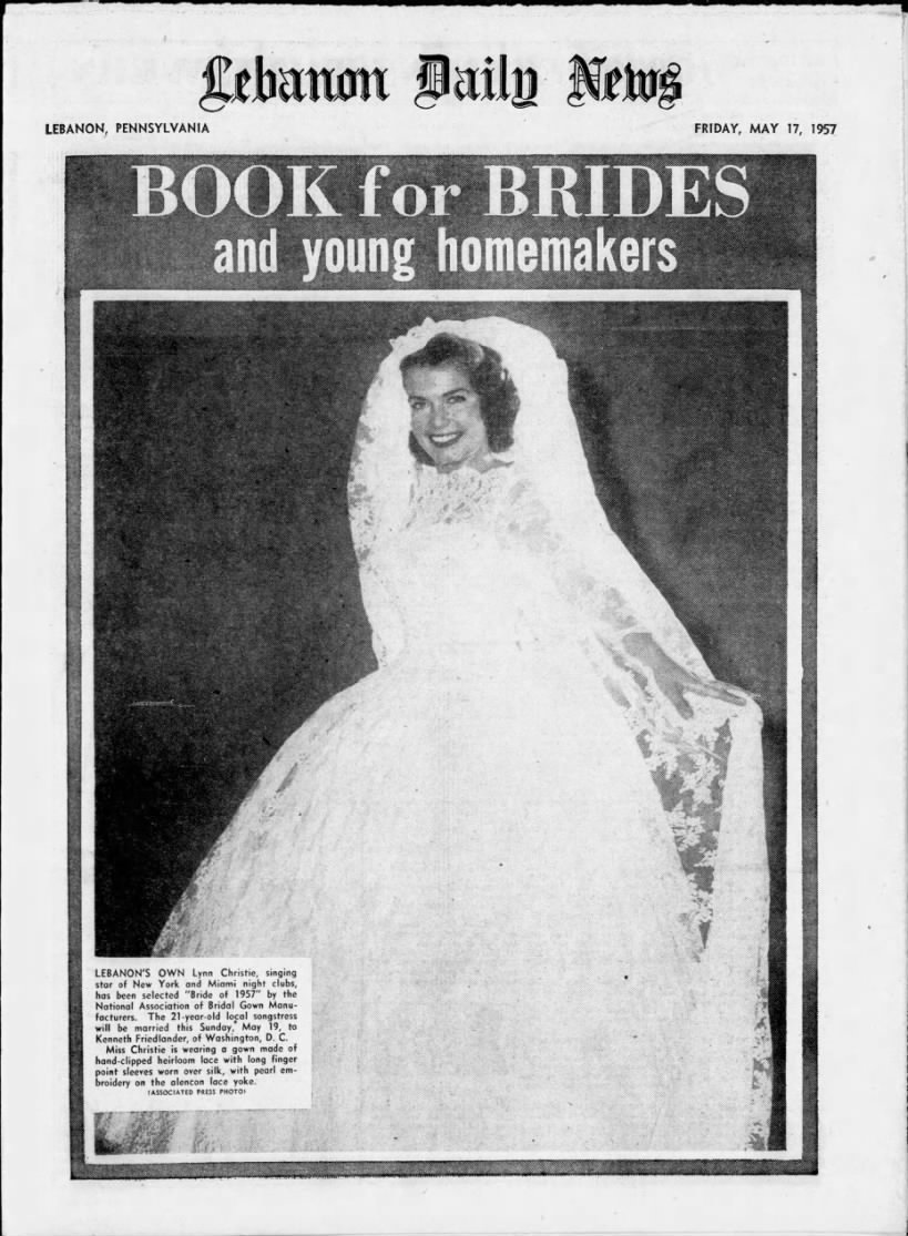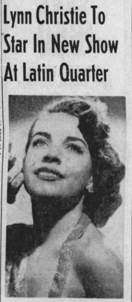In 1955, Christie performed with an orchestra in Washington, D.C., where she was courted by prospective employers. Future husband Kenneth Friedlander, a stockbroker, recounted in an April 1957 LDN article that he hoped Christie would sign with the Music Corporation of America. Instead, she signed up to be a professional singer in New York’s Latin Quarter, where she eventually starred in a show.