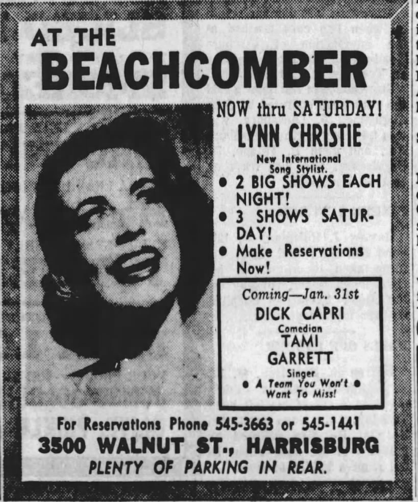 A frequent traveler, with nightclub gigs in Miami, Atlantic City, Pittsburgh, and more, Christie still found the time to visit Lebanon regularly. In addition to appearances at local dances and other events, Christie also performed at the Ephrata Legion, Pushnik’s, and more.