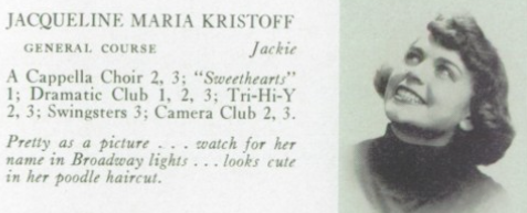 After her graduation, Christie became known as the “Sweetheart of the Fifth Infantry Division” at Fort Indiantown Gap Military Reservation, performing there and at other local venues regularly. In 1954, Christie traveled to New York City to attend a dramatics school.