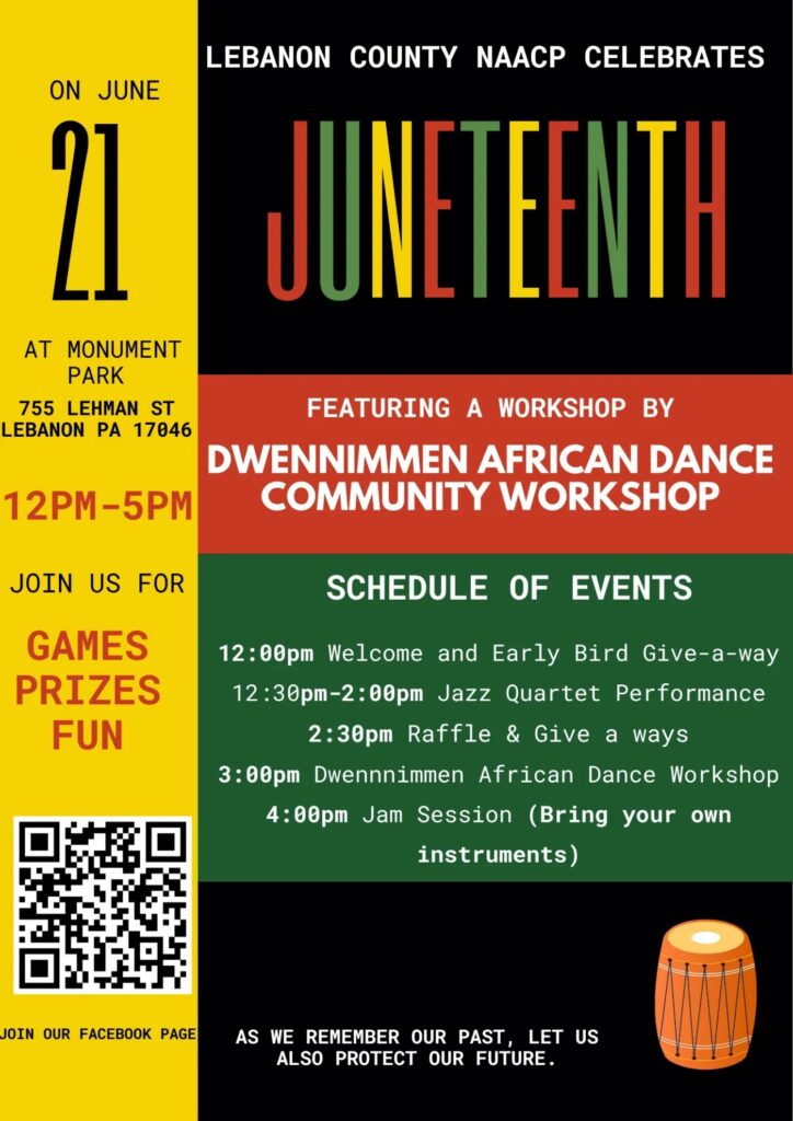 The Lebanon County branch of the National Association for the Advancement of Colored People will host its fifth annual Juneteenth/Freedom Day celebration on Saturday, June 21, in Monument Park, Lebanon.