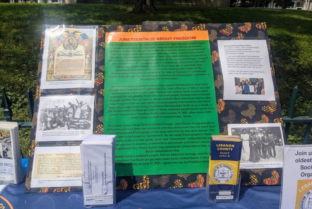The celebration, hosted by the Lebanon County NAACP, included an African dance workshop, raffle, and jazz quartet, as well as food, cool drinks, and games for attendees.