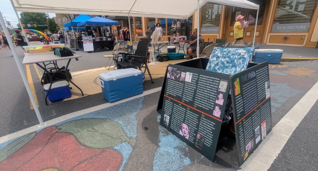 Throughout the event, posters and signage (provided by the organizers of the Schuylkill Pride Fest) explaining the history of Pride going back to the Stonewall Riots in 1969, which were precipitated by a police raid on the Stonewall Inn.