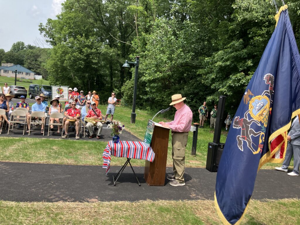 “For 50 years, this very site served as the Pennsylvania National Guard encampment, where the brave men of the 28th Iron Division trained for the Spanish American War, the Mexican border war, and World War I, and also trained in years in between to be a ready and able fighting force,” said master of ceremonies John Weaver. “These soldiers prepared here to serve their country and our community opened its hearts and homes to their families. That partnership between our community and those who served created the foundation that allowed Mount Gretna not just to survive but to thrive.”