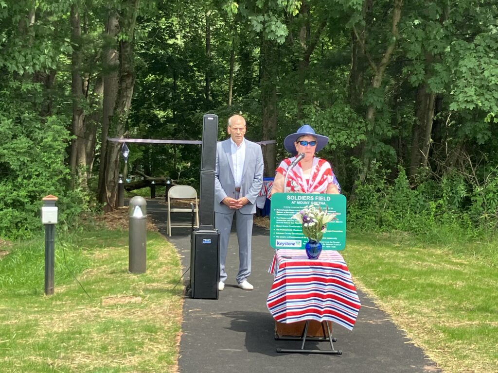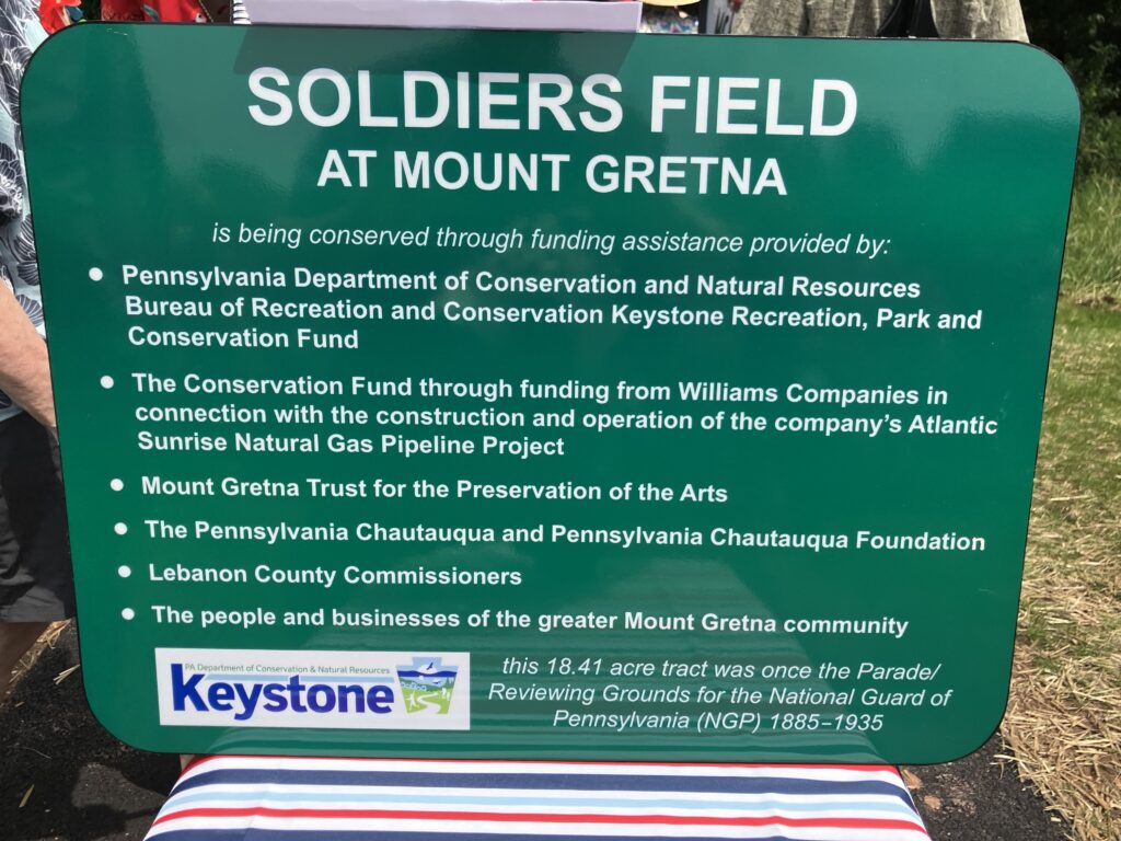 The newly named Soldiers Field at Mount Gretna and the 28th Iron Division Bridge were dedicated at a ceremony on Saturday, June 21.