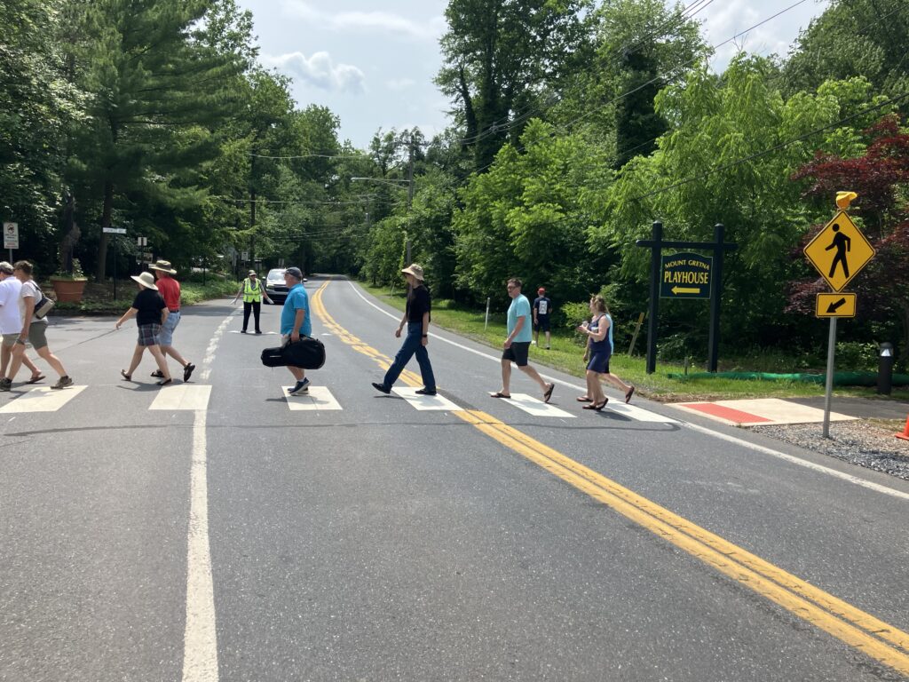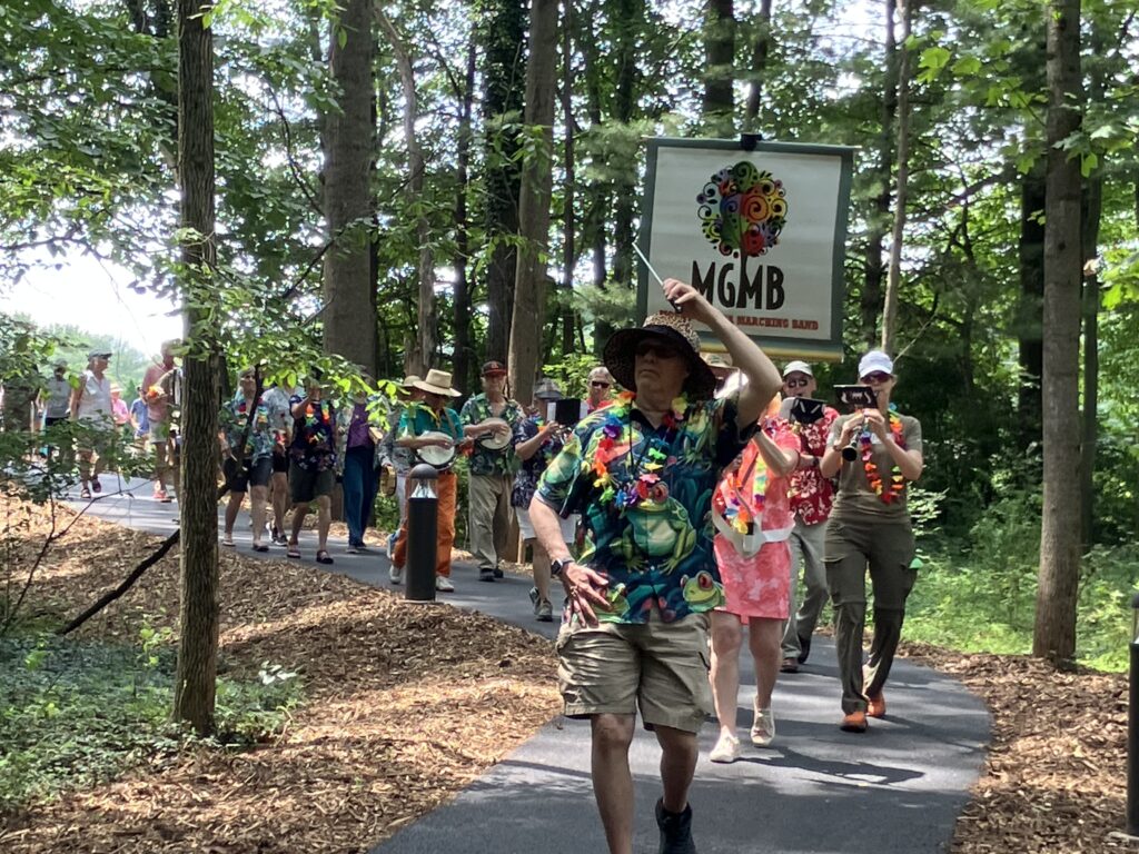 Following dedication comments, Litz cut the ribbon that was placed at the entrance to the path leading from Soldiers Field into town. The recently formed Mount Gretna Marching Band led the processional down the pathway through the woods, across the bridge, and over Route 117 at the crosswalk, ending the parade at the Chautauqua’s Hall of Philosophy.