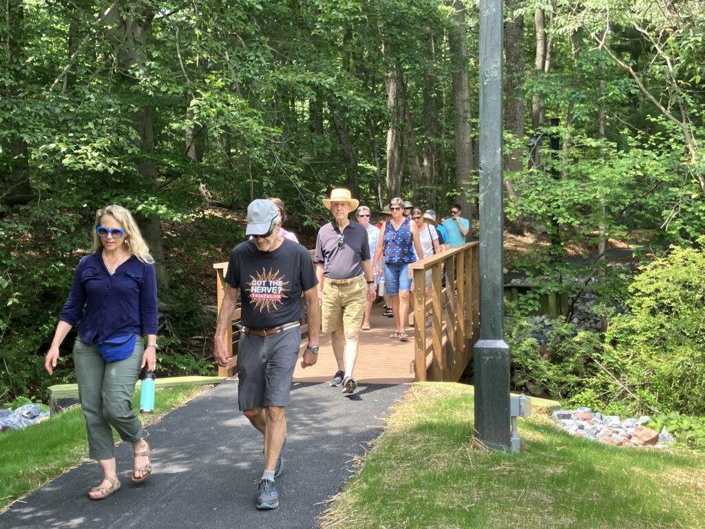 “People are excited that we have 20 acres of land that’s going to be preserved as open space for the community in perpetuity. They’re excited about, just behind me, the work that’s being done to remove invasive species from the woodlands,” said Cassel. “Just behind everyone here approaching Timber Road, a wildflower meadow has been installed with all native wildflowers. People are excited about the restoration of the beach path, that’s helping to bridge and bring together different communities, the camp meeting, the heights, Timber Hills, and the Chautauqua. And finally, folks are excited about the path that I’m standing on that leads to the bridge that will take everyone into the center of town, again helping to better connect our different communities.”