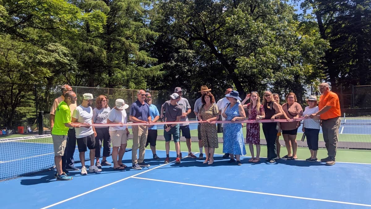 Tuesday afternoon, pickleball players and others in the community braved sweltering heat to watch the unveiling of four pickleball courts in Coleman Memorial Park.