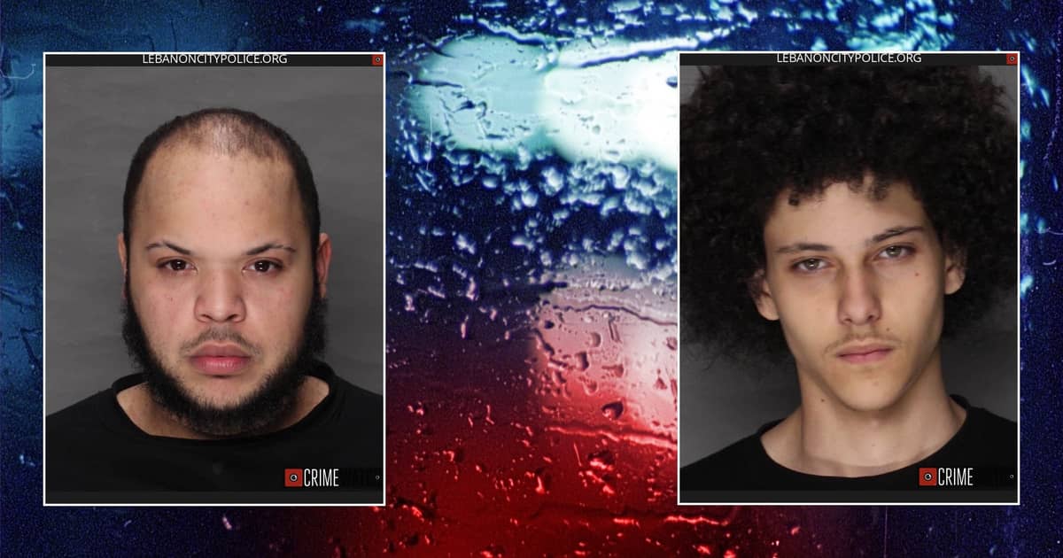 Two Shenandoah men were arrested Saturday after allegedly breaking into a Lebanon home and stealing $800 worth of items while threatening residents at gunpoint.