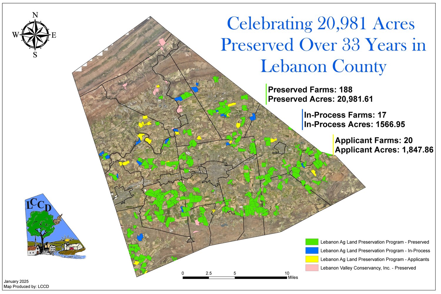 Craig Zemitis, a land preservation specialist with Lebanon County Conservation District, said the addition of these three operations means Lebanon County has preserved 188 easements totaling nearly 21,000 acres over the past 33 years.