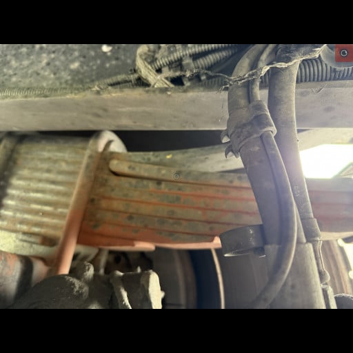 - Picture 2 shows a leaf spring, the suspension of the rear axle, and the main leaf is broken. This could lead to handling issues with the vehicle or even the part falling off the vehicle.