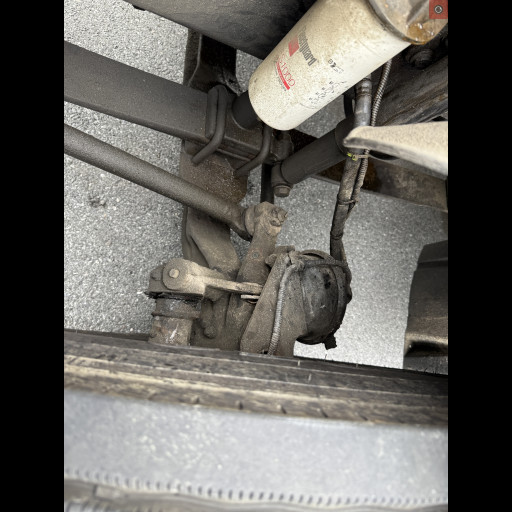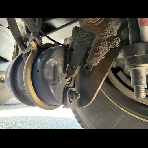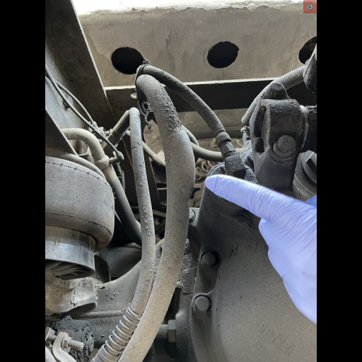 - Picture 5 shows a brake chamber on the steering axle that has loose mounting bolts. This is very dangerous and affects the braking of the commercial motor vehicle.
