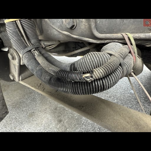 - Picture 6 shows a group of wires that have been damaged or cut through. This causes shorts and could affect a number of functions or devices on the commercial motor vehicle.