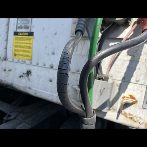 - Picture 4 shows the brake hose leading to the glad hands (that connect to the trailer) is dry rotted, and the reinforcement plies are becoming frayed. This can lead to a blowout and loss of braking on the trailer.