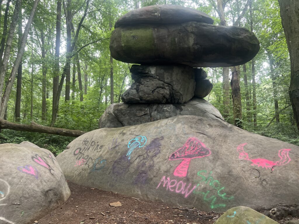 The natural rock formation in South Londonderry Township in State Game Lands 145 is a popular destination for families and young people to climb, explore, and, for some vandals, cover the exposed rock with spray paint.
