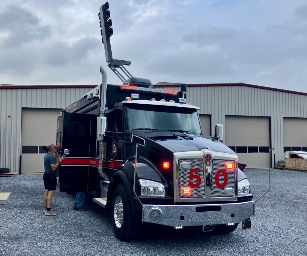 Sallada said the new vehicle was crafted out of an old semi-tractor chassis, meaning the vehicle has been repurposed. All of the manufacturing portion of the project occurred in Annville at the company’s Vengeant Apparatus division, one of several separate operations that comprise the 911 Rapid Response family of companies.