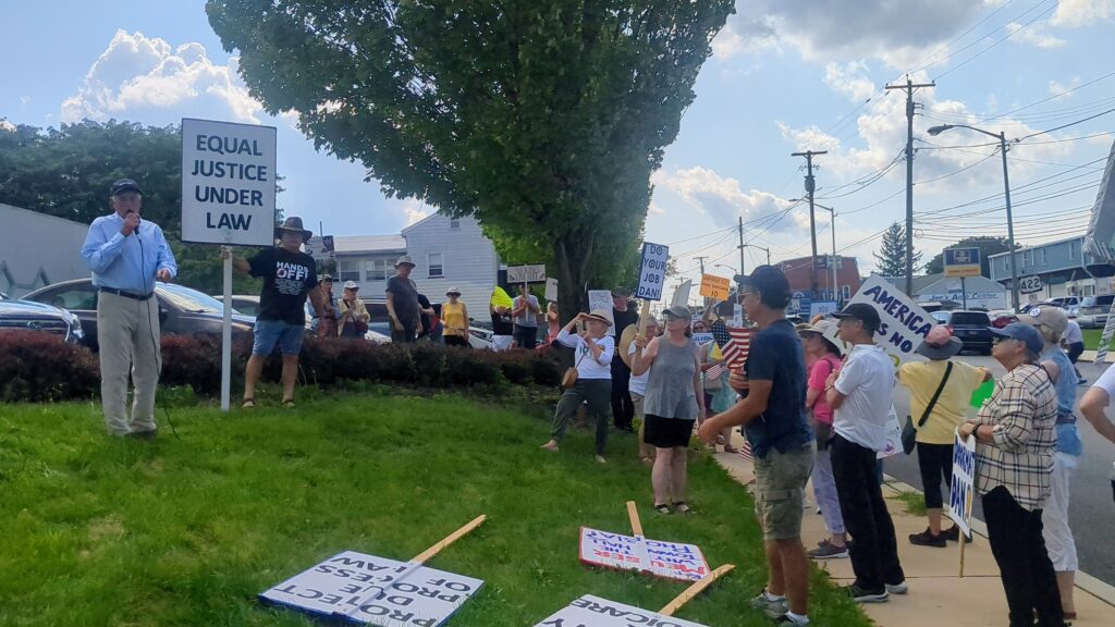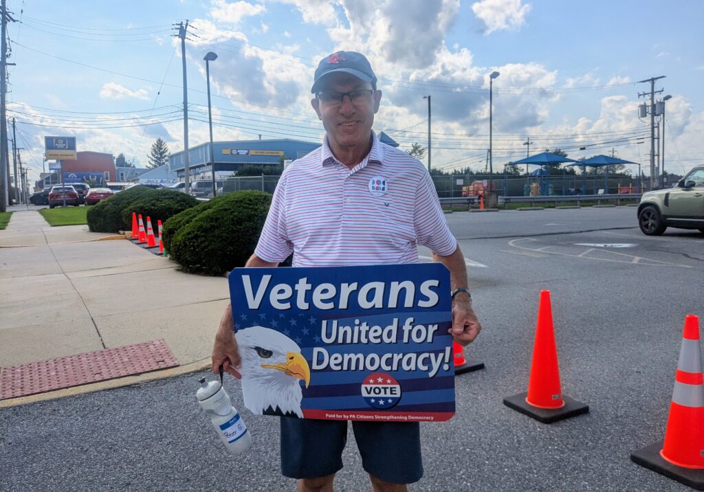 Peter Gawron of Hershey, a veteran of the Vietnam War era, said he feels compelled to protest largely due to Trump’s disrespect to veterans and the military. He cited a 2018 instance that Trump opted to skip a ceremony honoring fallen World War I soldiers due to rain and an anonymous report that Trump referred to veterans as “losers and suckers,” which Trump has denied.