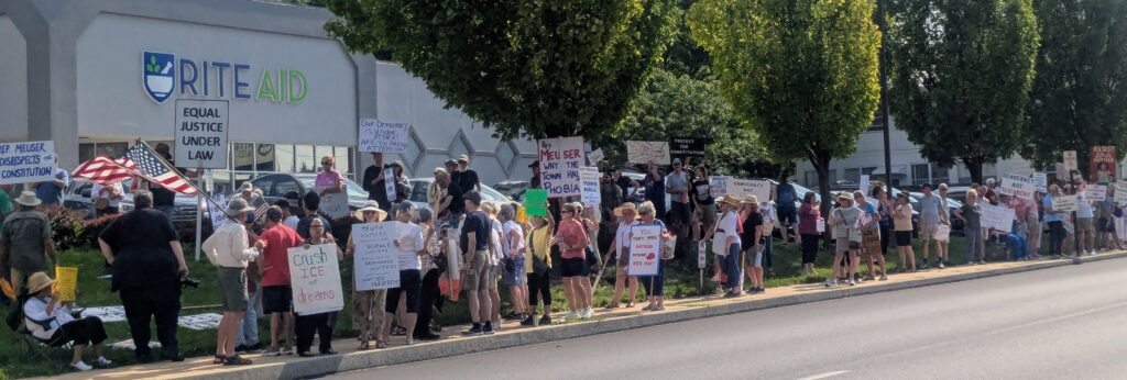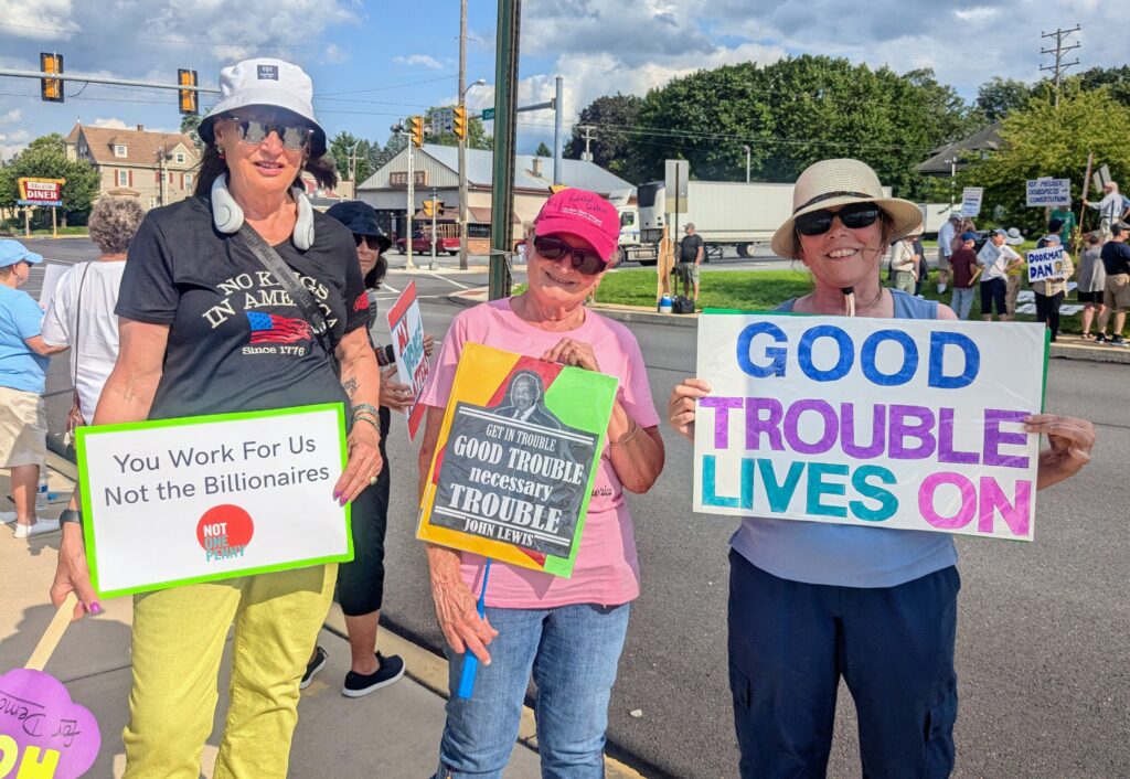 Schroeder said organizers have no intention of stopping the weekly protests, and noted that next Monday, they plan to begin a tradition of walking to Meuser’s local office in the Lebanon County Municipal Building to hand-deliver letters from constituents to the office.