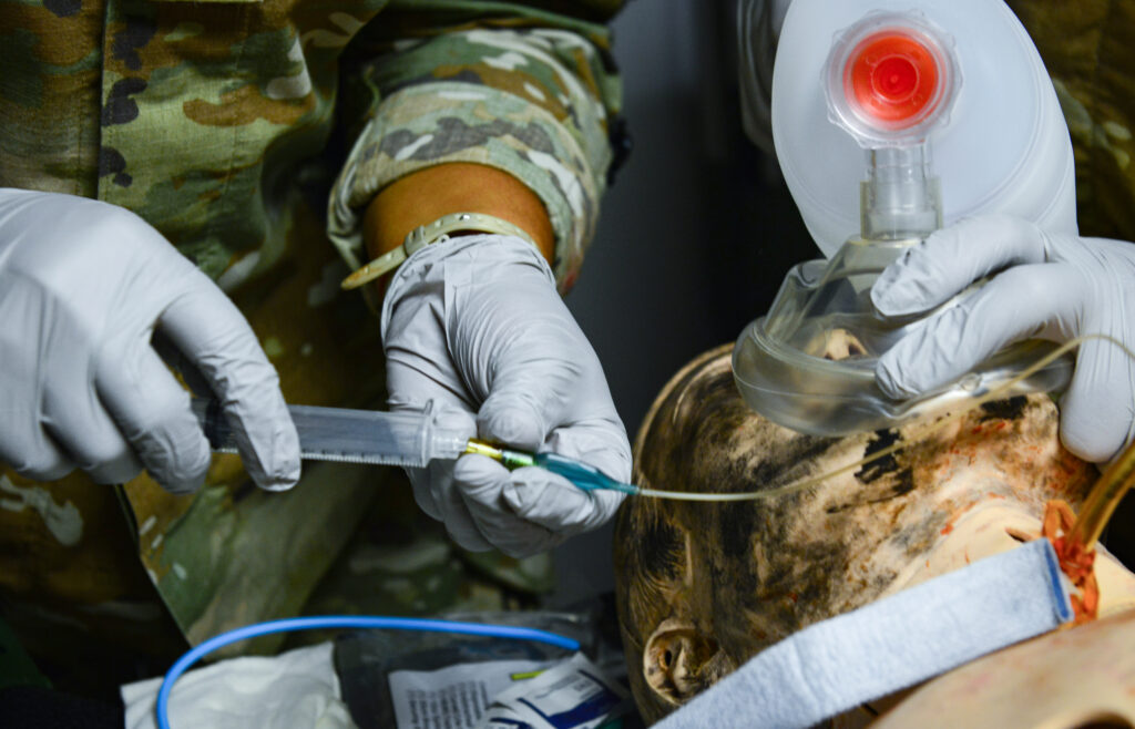 The one-hour exercise was intended for the personnel “to demonstrate critical battlefield care under simulated combat conditions, including on-site triage, emergency medical procedures and casualty evacuation,” according to a press release.