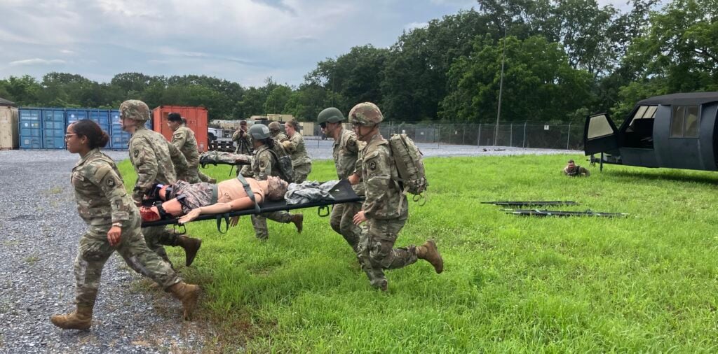What had appeared to be a simple transport suddenly morphed into a life-and-death situation as soldiers had to deal with a variety of injuries suffered by their colleagues when the copter crashed. (The “injured” who needed additional medical services were actually mannequins.)