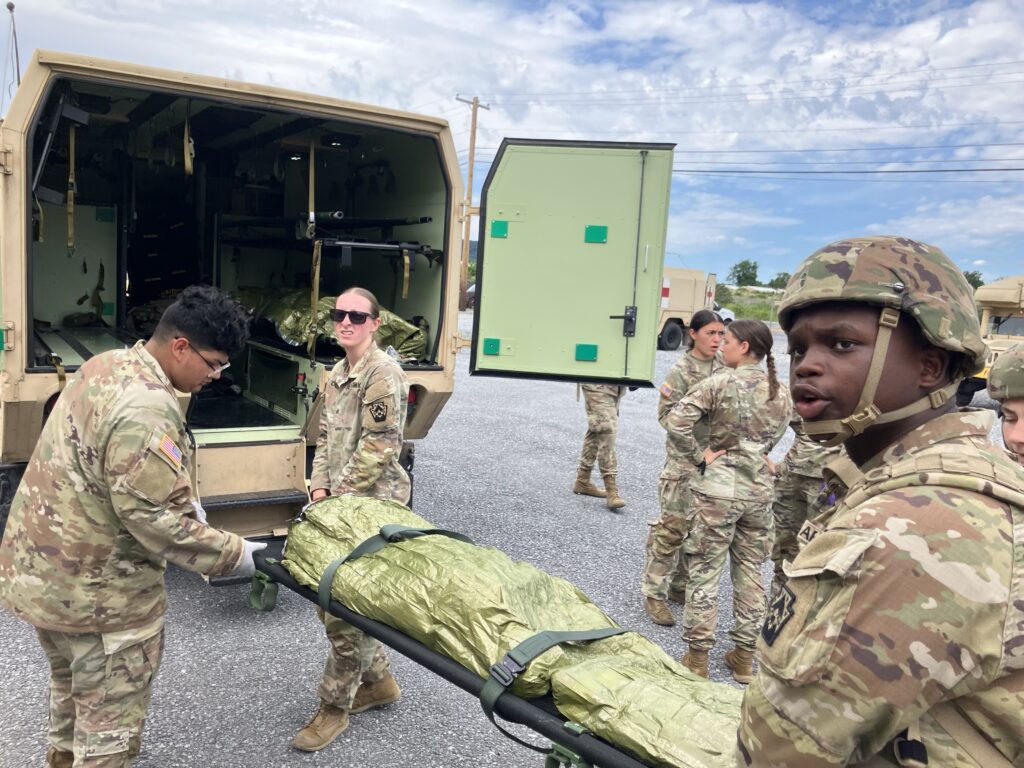 This past week and next, Allen’s focus is on the healthcare profession while his company conducts medical training exercises at Fort Indiantown Gap. On Friday, Allen and about 50 fellow Guardsmen participated in a realistic mass casualty exercise training event at the military installation in northern Lebanon County.