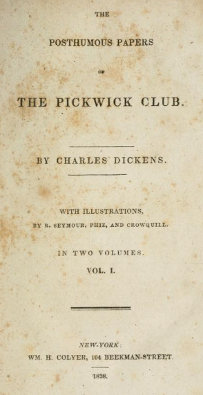 Twenty-four year-old Charles Dickens got his start publishing a series of humorous stories, The Posthumous Papers of the Pickwick Club, between April 1836 and November 1837. The series (later becoming his first novel “The Pickwick Papers”) spread from England to the United States by 1838, at which time George Dawson Coleman (age 13) was likely enjoying and impressed by periodicals like Knickerbocker Magazine.
