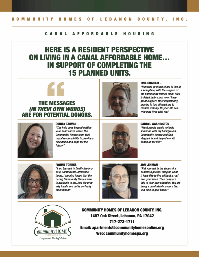 Want to know more about Community Homes of Lebanon County? Visit communityhomespa.org or call 717-273-1711, extension 100.