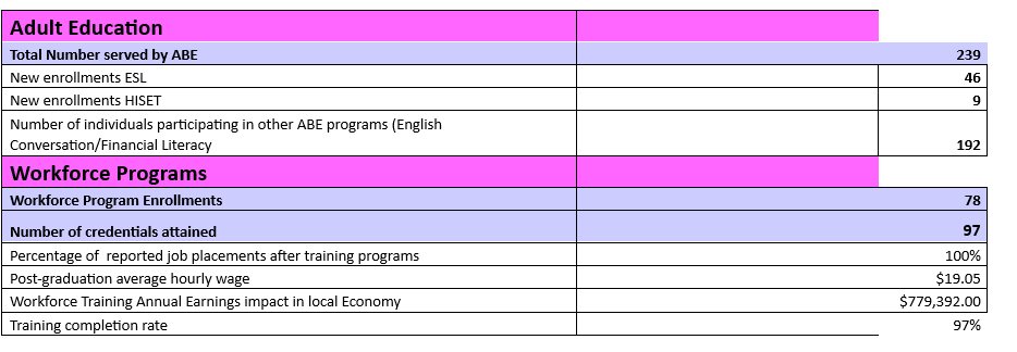 “Our building trades, which are carpentry, plumbing, electric, along with basic skills. Basic skills for the population in general, but also to be conscious of language skills,” Torres said. “So we have a combination of language skills for folks that are coming from other parts of the world, coming to (learn) English.”
