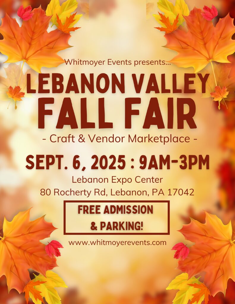 Join us for the ninth annual Lebanon Valley Fall Fair and Craft Show on Saturday, September 6, 2025, from 9 a.m. to 3 p.m. at the Lebanon Expo Center!