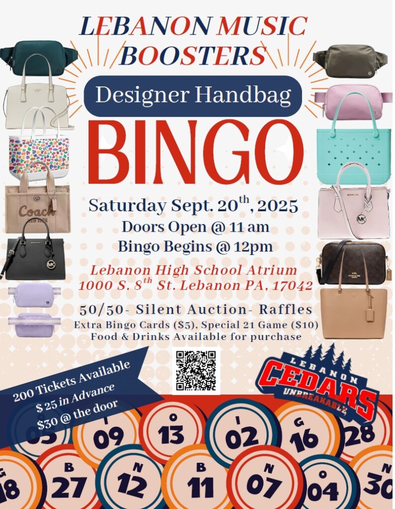 The Lebanon Music Boosters are hosting their first-ever Designer Handbag Bingo & Silent Auction on Saturday, September 20, 2025, at Lebanon High School.