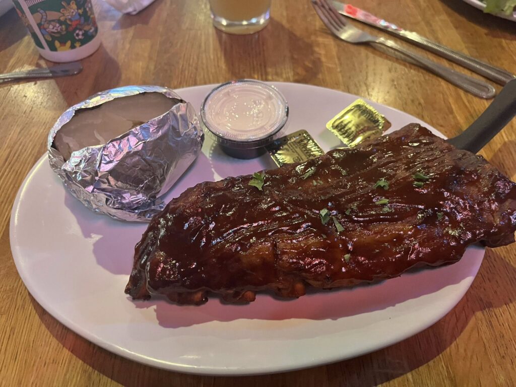 The ribs were the special this evening and came with some extra sauce on top. The meat fell off the bone, but the temp of our ribs was warm. The meat was flavorful and had a crispy edge that was well seasoned.