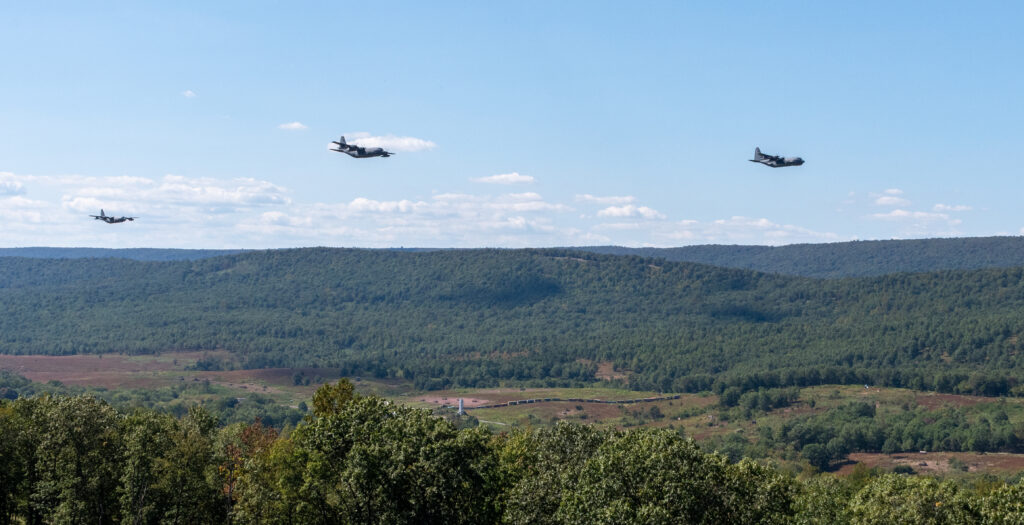In a military formation flight embargoed until it departed Middletown, airmen from the 193rd Special Operations Wing took off today from Harrisburg Air National Guard Base – Harrisburg International Airport – for a routine training exercise with a profound extra purpose.