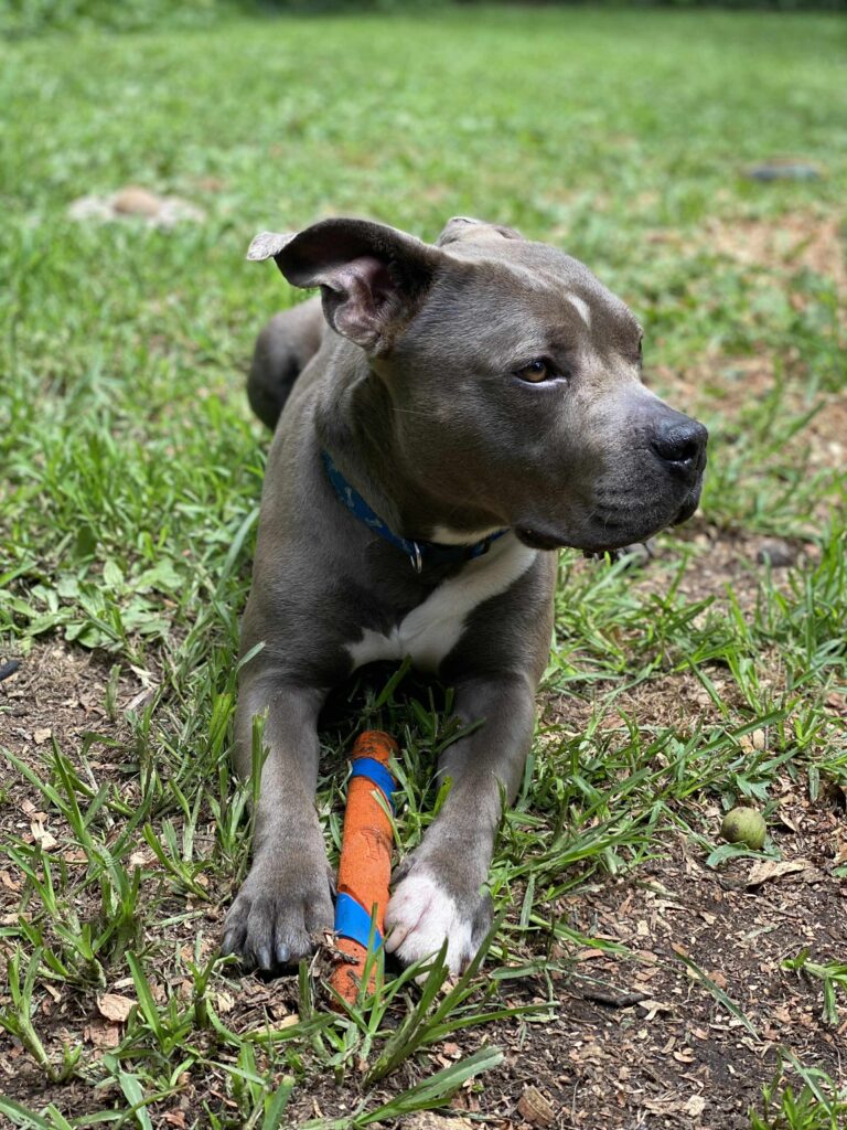 “Holy guacamole!” Pitties.Love.Peace rep Mika Stiefel exclaims, noting that this 3-year-old male pup is “playful, endearing, snuggly” and a “perfect mix of active and calm.”