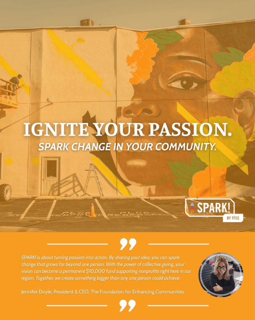“Philanthropy isn’t just for a select few. It belongs to everyone who cares about their community,” said Jennifer Doyle, President and CEO of TFEC. “SPARK! is about turning passion into action. By sharing your idea, you can spark change that grows far beyond one person. With the power of collective giving, your vision can become a permanent $10,000 fund supporting nonprofits right here in our region. Together, we create something bigger than any one person could achieve.”