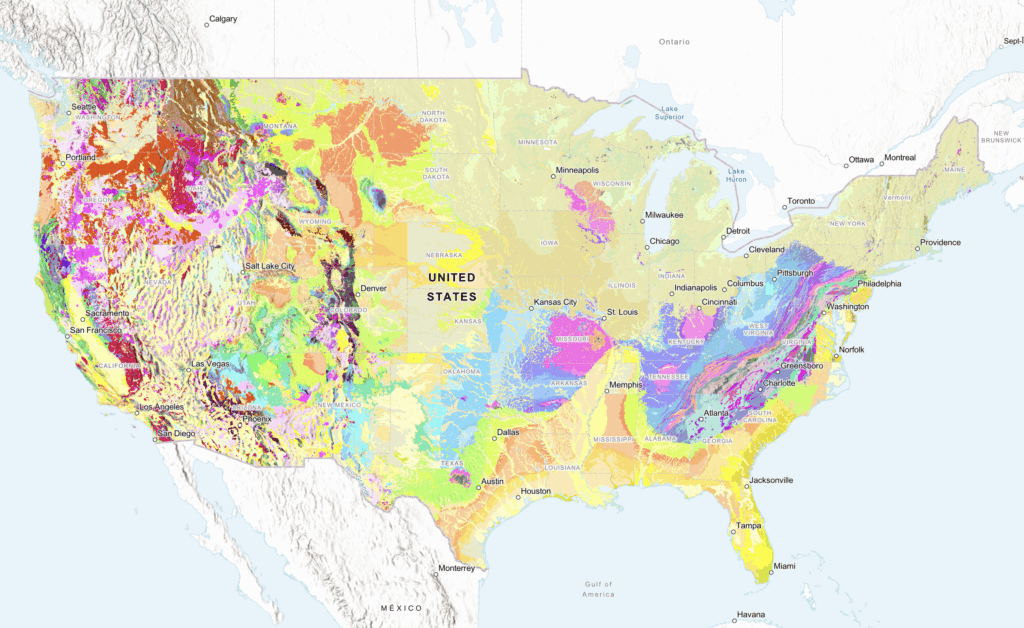 It’s all detailed in “the most detailed national-scale geologic map of the country to date,” released recently by the U.S. Geological Survey and touted as “a significant advancement for geoscience … offering a unique regional view of geology at and beneath the Earth’s surface.”