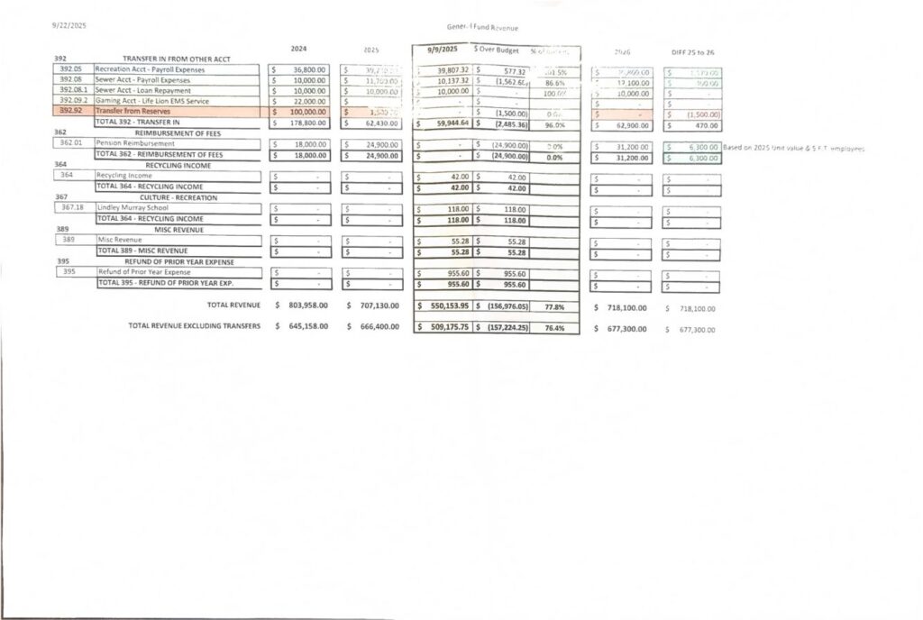 The first draft of the budget totals both estimated revenues and expenditures at $718,100. Excluding transfers, expected revenues total $677,300, with no planned tax increase.