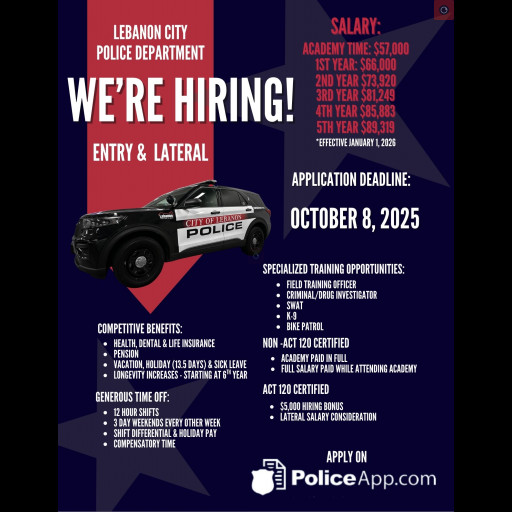 Lebanon City Police Department is hiring – Looking for a rewarding career where every day makes a difference? Join the Lebanon City Police Department and help serve, protect, and strengthen the community!