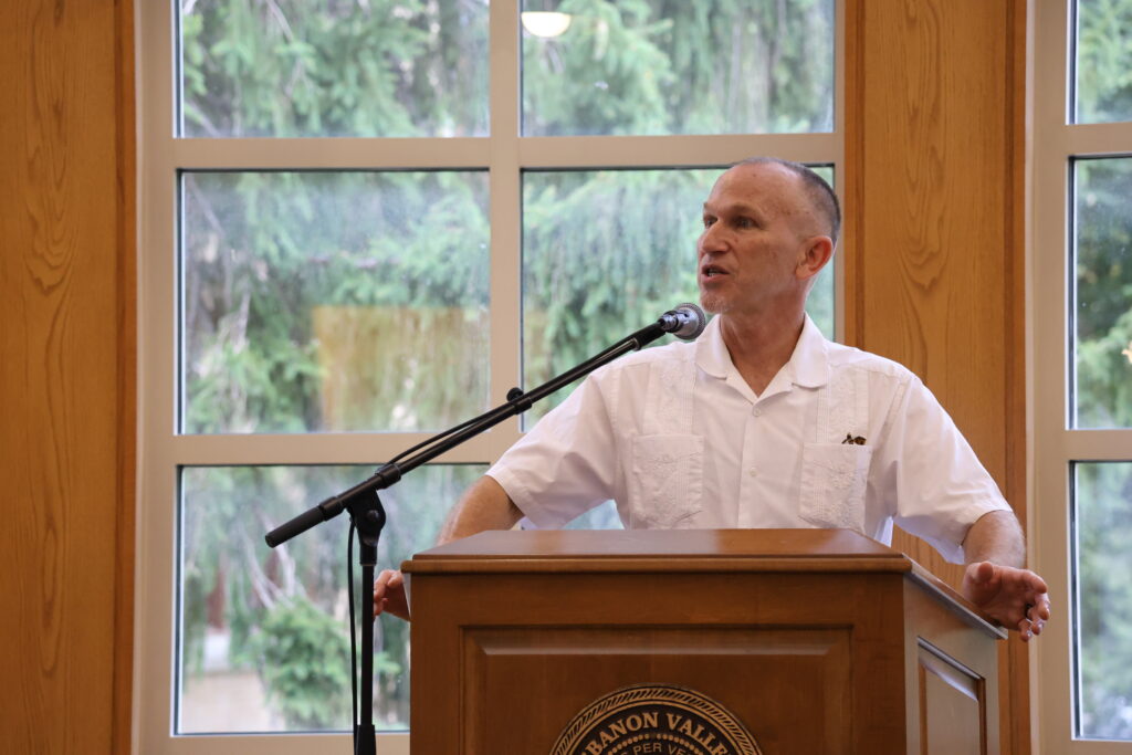 On Wednesday, Sept. 17, Dr. John Hinshaw, chair of social sciences and a professor of history at Lebanon Valley College, presented “The Right to Vote: 350 Years of Voting in Pennsylvania” in the Vernon and Doris Bishop Library atrium.