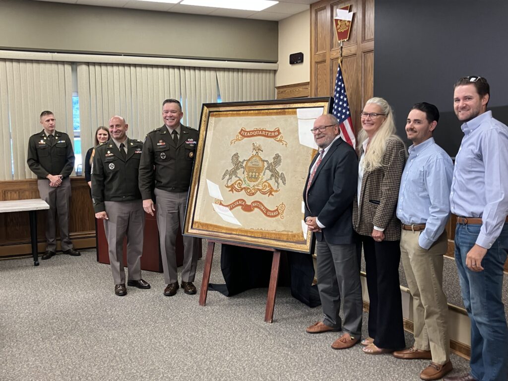 “Luckily, Mr. Restelli, recognizing the importance of this flag to the commonwealth, purchased it, intending to restore it to its rightful place at the headquarters of the Pennsylvania National Guard,” Olsen said. “Mr. Restelli, with the help of the Governor’s Office, recognized the Pennsylvania National Guard Military Museum as the ideal means to ensure the preservation and to exhibit this significant artifact for future generations. This historic flag will take a place of honor among the Pennsylvania National Guard Militaries collection.”