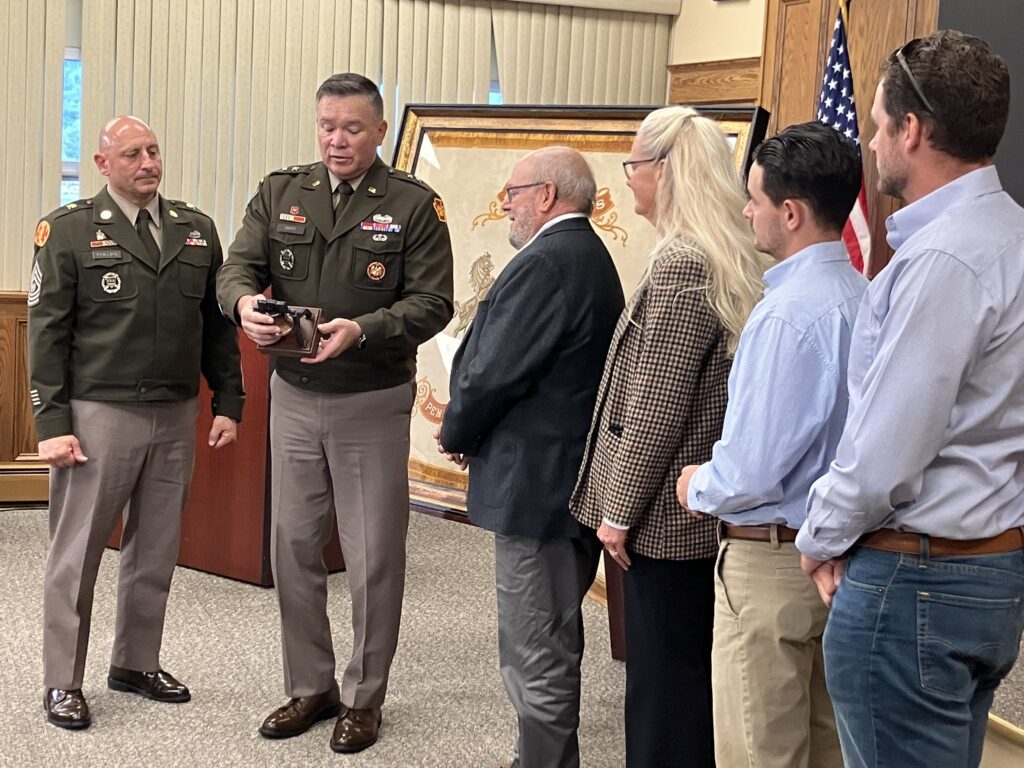 “On behalf of the 18,000, probably 18,000 soldiers and airmen that proudly wear a keystone of some type on their uniform and serve in this Guard, thank you very much,” he said. “And then also on behalf of the over 4,000 DMVA employees, many of whom are veterans themselves, our veterans in our six veterans homes. This means a lot to us.”